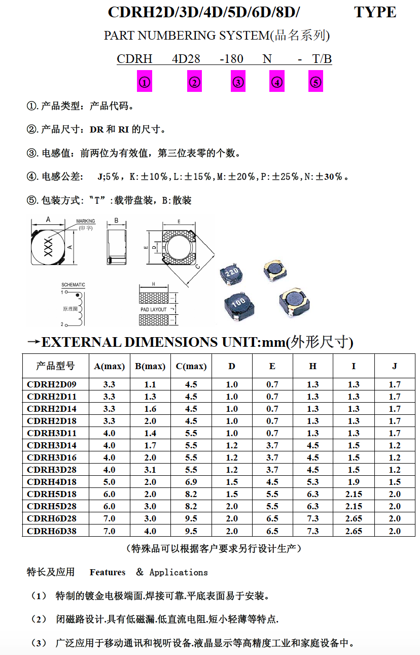 (2) 閉磁路設計.具有低磁漏.低直流電阻.短小輕薄等特點.