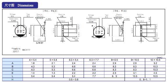 1-1貼片電解電容適用于電腦主版,車載,移動DVD,遙控器,多媒體收音機(jī),多媒體音箱等! 1-2常規(guī)溫度,85℃,2000小時壽命,適用電子線路中。 1-3貼片鋁電解電容通常起濾波、旁路、耦合、去耦、轉(zhuǎn)相等電氣作用,是電子線路必不可少的組成部分。 標(biāo)準(zhǔn)品VS系列 A,適用于回流焊 B,性能穩(wěn)定,高可靠性 C,適用于高密度表面貼裝 D,壽命-40℃~-85 ℃,2000H E, 體積:4*5.4 5*5.4 6.3*5.4 6.3*7.7 8*10.5 10*10.5 F, 容量:0.1UF-1500UF G, 耐壓:6.3V-100V